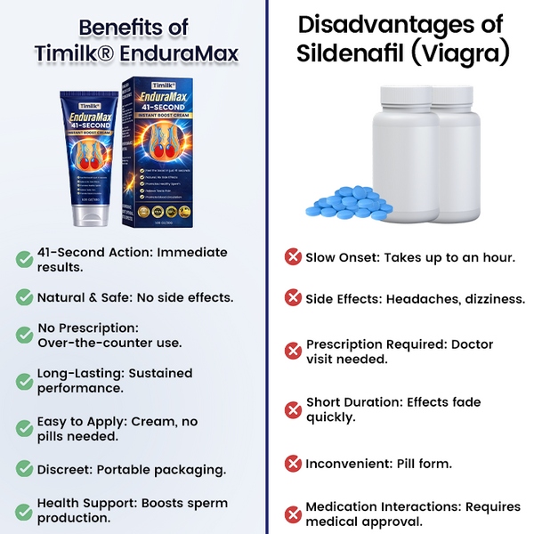 Introducing Timilk® EnduraMax 41-Second Instant Erection Cream, designed to restore your confidence and performance in just 41 seconds. Our clinically-tested formula provides a quick and natural solution, targeting the root cause of erectile challenges and enhancing your intimate experience without the need for invasive procedures or daily pills.